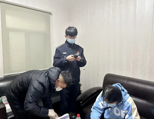 徐凯(中)运用禁毒科技服务基层毒品问题整治行动