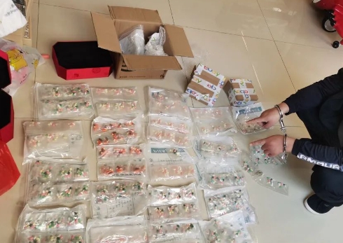 同年10月,民警获取“嫌疑人购买了一批含毒品‘减肥药’正准备给下线寄出”线索,立即收网抓捕,将袁某夫妻二人抓获归案,当场查获含毒品成分“减肥药”792包,共计5000余粒。通过深挖细查,循线追击,民警又将袁某的上线刘某和多名下线悉数抓获,在吉林省某地刘某家中,查扣含毒品成分“减肥药”1080包,共计4260余粒。