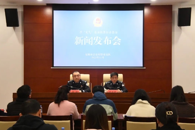 11月23日,江苏省无锡市公安局举行涉“笑气”违法犯罪打击整治新闻发布会,通报相关工作情况。