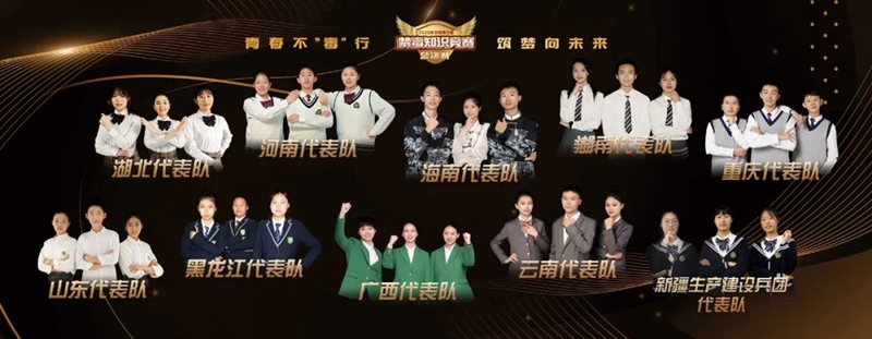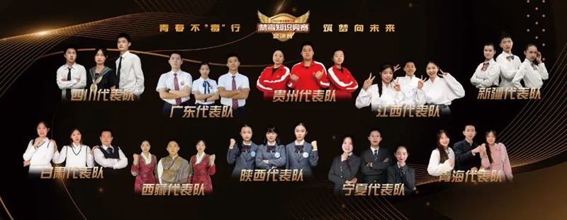 决赛阶段以禁毒知识竞技为主体,采用多种竞赛形式,全方位、多角度增加现场的竞技性、趣味性以及观赏性,通过“同心战‘毒’” “雷霆扫‘毒’” “慧眼识‘毒’” “智慧辨‘毒’” “巅峰决‘毒’”五个环节的比拼决出冠军。
