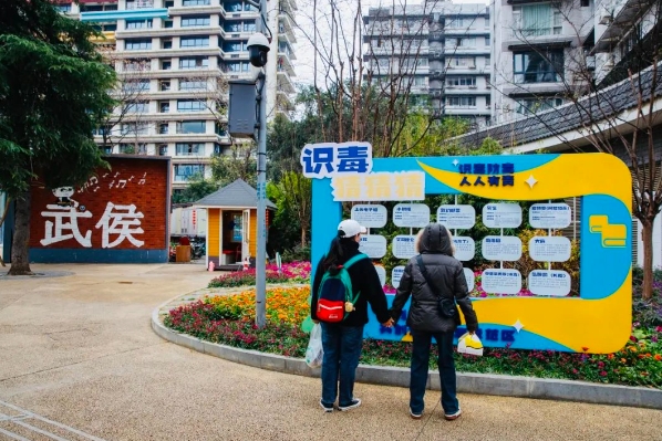 不同于传统的禁毒宣传传单,为让更多年轻人沉浸式地体验学习禁毒反诈骗知识,武侯区精心设计“武侯禁毒五虎将IP”卡通形象,制作了禁毒打卡板。
