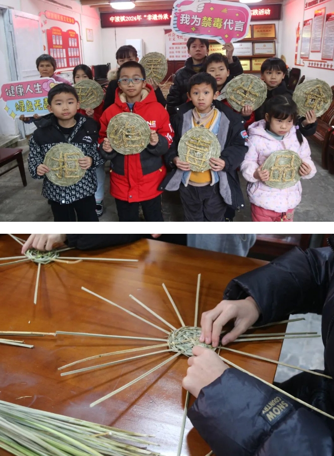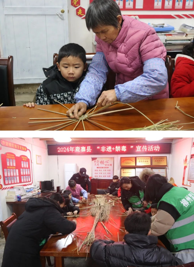 经过大家的共同努力,一件件带有“珍爱生命 拒绝毒品”等字样的禁毒主题草编工艺品呈现在大家眼前。这场草编里的禁毒活动,让孩子们在感受非遗文化魅力的同时,了解毒品危害,增强了防毒拒毒意识,把禁毒理念传播得更广、更深、更远。【供稿:鹿寨县禁毒办】