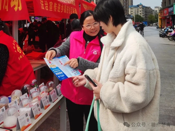 3月7日上午,龙南市公安局禁毒大队联合妇联在龙洲社区开展以“不让毒品进我家”为主题的禁毒宣传活动。