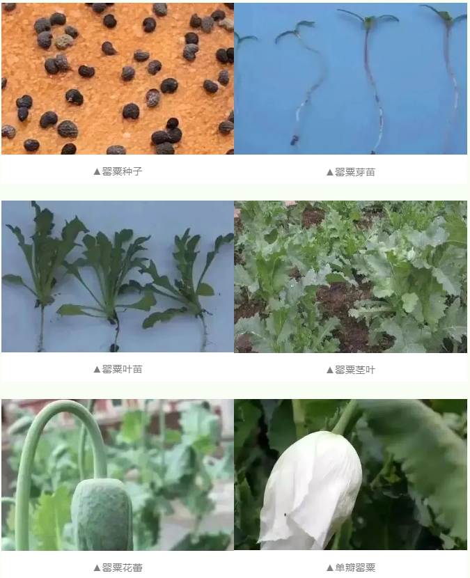 罂粟是一年生草本植物。叶片碧绿,花朵五彩缤纷,茎株亭亭玉立,蒴果高高在上,夏季开花,花大,单生枝顶。花瓣4片,红色、紫色或白色。果实球形或椭圆形,种子小而多。