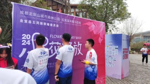 赛中,五凤镇禁毒社工、禁毒志愿者在宣传点位积极引导群众及完赛选手来到禁毒宣传打卡点签字合影,禁毒知识有奖问答等方式,同时倡议人人争做禁毒志愿者,一起通过跑步、徒步等体育运动,宣传禁毒知识,共同倡导健康美好生活。