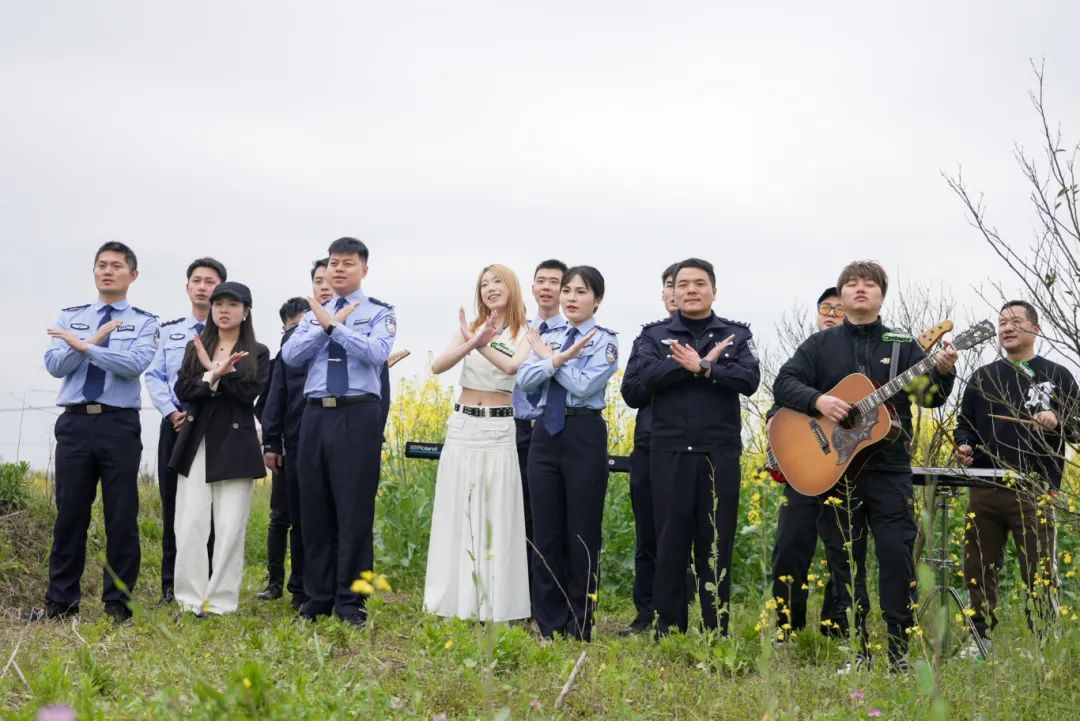 近日,江西省抚州市公安局临川分局和市局禁毒支队民警联合“抛手柄乐队”在临川区秋溪镇万亩油菜花基地开展禁毒宣传,并为大家带来了一首改编版的禁毒歌曲《稻香》,他们一开嗓,便吸引了附近农户和采风游客驻足欣赏。