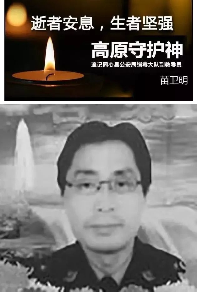 在牺牲之前,他下乡蹲点、缉拿毒贩已连续工作40多天;在牺牲的前一天,他和同事们连续工作20余小时侦破了一起重大贩毒案件,连夜审讯至次日凌晨4时又去堵截另一起毒品交易,突发车祸因公殉职。宁夏同心县公安局缉毒大队副教导员苗卫明,在缉毒一线28年如一日忘我工作,牺牲在自己钟爱的警察岗位上,英勇和忠诚铸就的不朽警魂为塞上大地谱写了一首英雄赞歌。