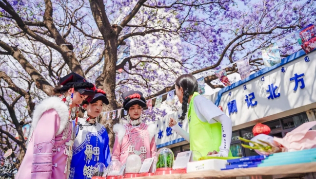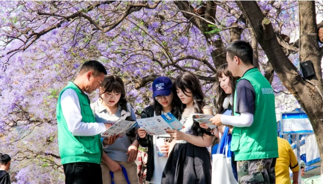 在这片盛放的蓝花楹下