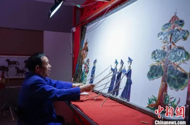 幕布后,大通县文化馆皮影团队的演员们配合背景音乐、道具和灯光的变化,正在操纵皮影进行表演,观众们仿佛身临其境。