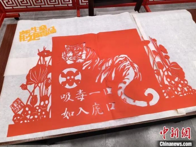 现场还展示了剪纸、刺绣等艺术作品,让民众在喜闻乐见的方式中了解毒品知识、认清毒品危害。