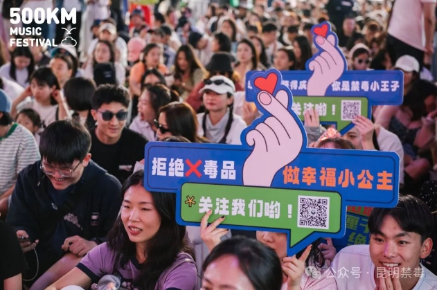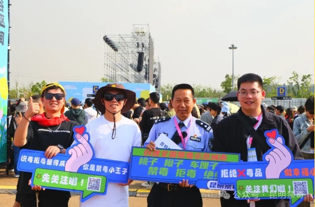 在音乐节现场,在昆明市公安局精心设置的禁毒知识问答环节中,通过轻松有趣的方式向粉丝们传递禁毒知识,让他们在享受音乐盛宴的同时,也能感受到禁毒工作的重要性。