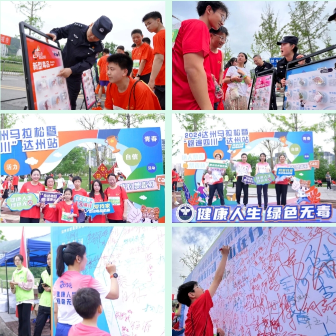 4月21日上午7时,2024四川达州马拉松暨“跑遍四川”达州站正式鸣枪起跑!15000余名跑友齐聚达州,借此契机,达州市禁毒办组织开展“运动人生,‘禁’情奔跑”宣传活动。