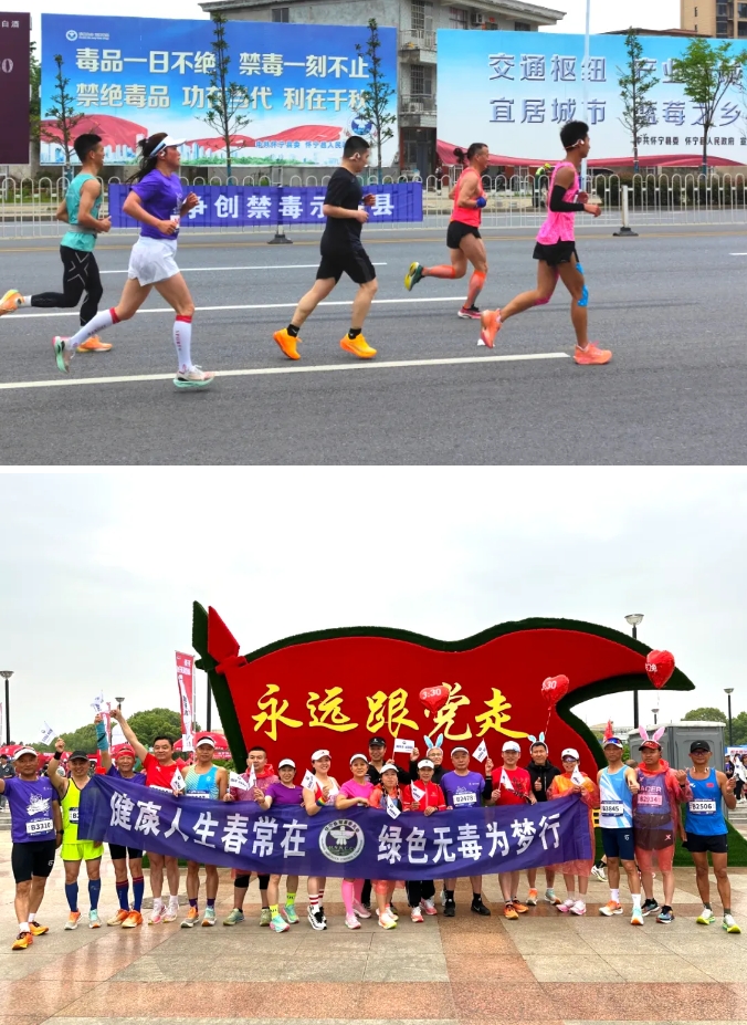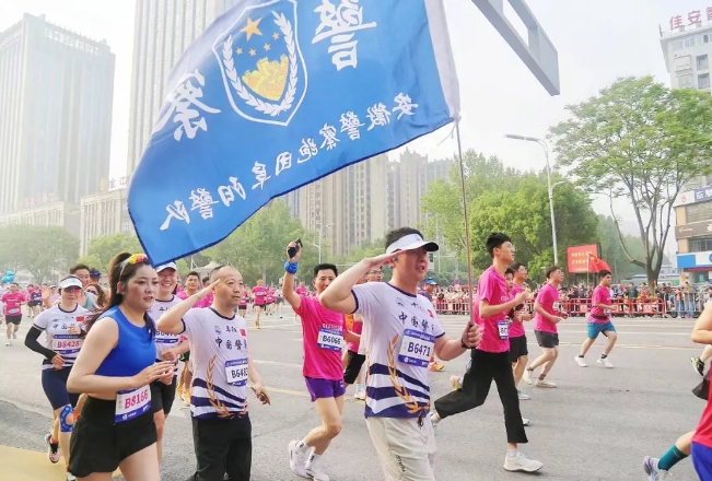 其中,100余名公安民警组成的公安跑团格外引人注目,他们身穿印有禁毒元素的“战袍”,在为比赛选手保驾护航的同时也传递着禁毒理念。