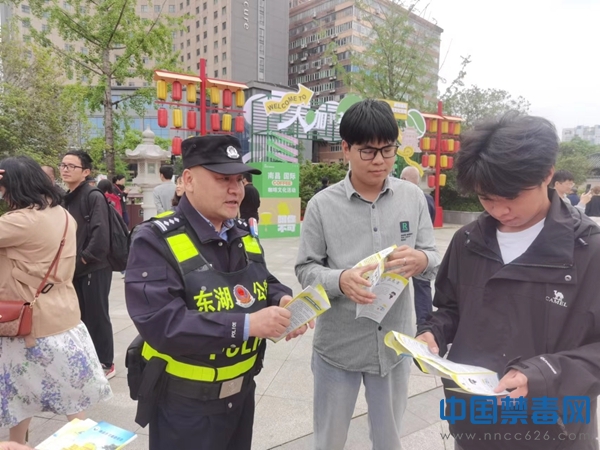 中国禁毒网讯 为深入推动全国禁毒示范城市创建工作,进一步筑牢景区防毒安全线,五一假期,江西省南昌市东湖公安分局缉毒大队联合滕王阁社区戒毒(康复)工作站禁毒社工抓住契机走进景区,开展禁毒宣传活动。