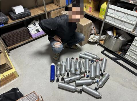 缴获600余个用于盛装“笑气”的大小钢瓶