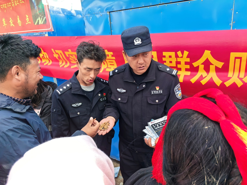 当雄县禁毒办深入乌玛乡巴嘎村,联合当地派出所、驻村工作队,在该村虫草交易点进行禁毒宣传教育工作。