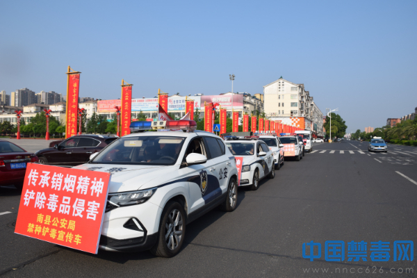 中国禁毒网讯 为隆重纪念虎门销烟185周年,6月3日,由湖南省南县禁毒委员会主办,南县禁毒办、南县禁毒协会承办,联合县公、检、法、司、农业农村局、林业局和全县12个乡镇人民政府,组织42台禁种铲毒巡游宣传车,在全县城乡上下对42万常住人口开展禁种铲毒巡游宣传教育。