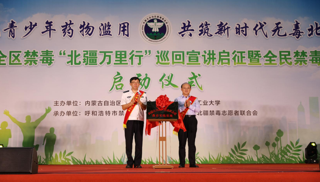 在活动现场,内蒙古自治区禁毒委副主任、自治区禁毒办主任、公安厅副厅长王亚新,内蒙古工业大学党委书记李占峰共同为内蒙古自治区禁毒社会化教育实践基地揭牌。据公安厅禁毒总队相关负责人介绍,禁毒社会化实践基地建设依托所在院校学科优势和人才基础,着力培育禁毒社会化教育师资团队、发展禁毒志愿者服务队伍、常态化开展禁毒社会化教育培训,旨在打造具有内蒙古地域特色的禁毒社会化工作新模式。