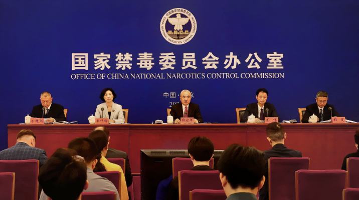 中国禁毒网北京6月19日电 6月19日,国家禁毒委员会办公室在京召开新闻发布会,通报全国禁毒部门认真贯彻习近平总书记关于禁毒工作重要指示精神,深入开展禁毒“清源断流”行动、涉麻精药品等成瘾性物质专项治理、境外拔钉追逃、易制毒化学品管理等工作情况及取得的成效,通报去年中美恢复禁毒合作以来的工作进展情况,发布2023年中国毒情形势报告以及2023年以来禁毒工作十大典型案例。国家禁毒办常务副主任、公安部禁毒局局长魏晓军,国家禁毒办副主任、公安部禁毒局副局长单叶骅,国家药监局药品监管司副司长杨霆,云南省禁毒办主任、公安厅禁毒局局长朱曦明介绍有关情况,并回答记者提问。发布会由国家禁毒办副主任、公安部禁毒局副局长高伟主持。