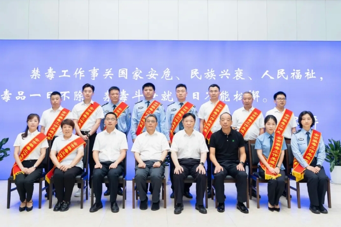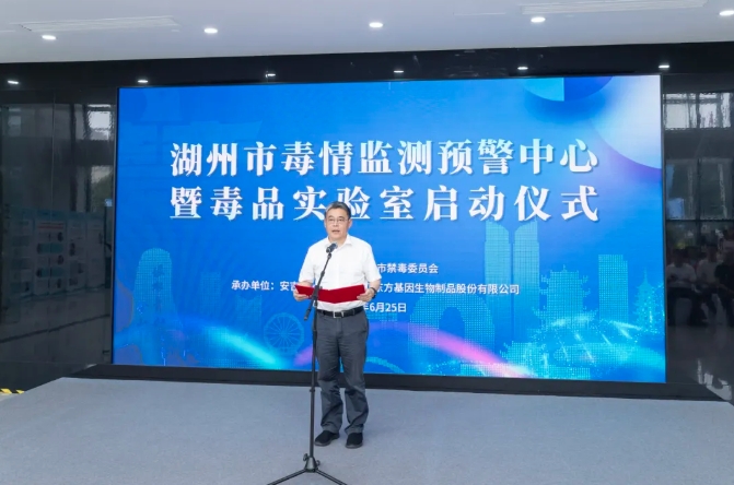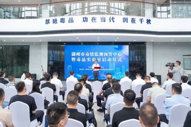 6月25日上午,湖州市毒情监测预警中心暨毒品实验室揭牌成立仪式在安吉县举行。市委副书记、社工部部长、政法委书记、市禁毒委主任吴智勇,市公安局党委委员、副局长蔡惠江,安吉县委常委、常务副县长王新勇,浙江东方基因生物制品股份有限公司总经理方效良,以及各区县公安(分)局局长、副局长、禁毒大队长,全市禁毒先进代表、安吉县禁毒委成员单位及乡镇街道禁毒办相关负责人参加仪式。市禁毒委副主任、市公安局党委委员姚金泉主持。