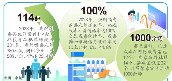阿团的经历,是宁德市公安局引导社戒社康人员重新融入社会的一幕缩影。近年来,宁德市全面实施社会面吸毒人员分级分类管理,2023年,强制隔离戒毒人员送戒率、病残吸毒人员送治率达100%,自愿戒毒就诊率、戒毒药物维持治疗就诊率同比上升44.6%、44.8%,吸毒人员肇事肇祸“零发生”。(记者 王庭钧)