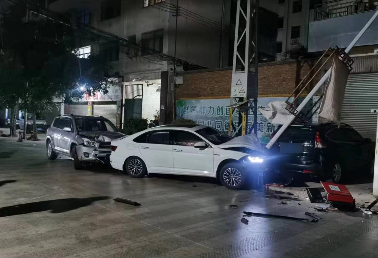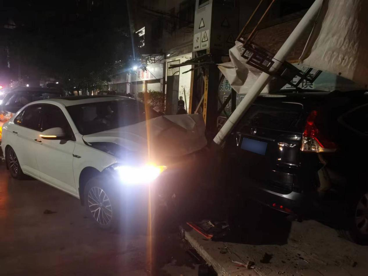 撞向路边电杆