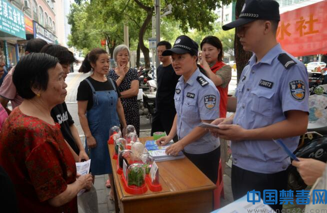 图为禁毒民警向群众讲解毒品知识。中国禁毒网发