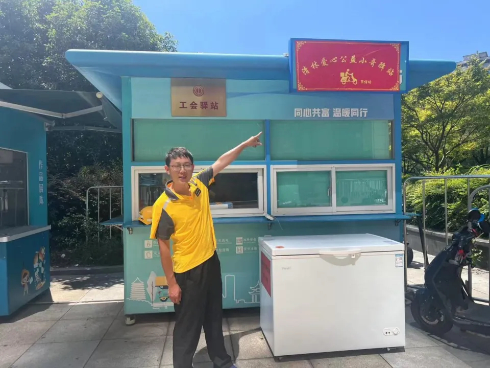以彭清林名字命名的“清林爱心公益小哥驿站”里,彭清林将矿泉水拆箱放入冰柜中,免费为来往奔波的外卖小哥送上清凉饮用水,同时,联合禁毒社工向大家传播毒品防范知识,从什么是毒品,毒品对个人、家庭及社会的危害、涉毒的违法性、对于物流中经常发现的毒品夹带、伪装进行举例说明。