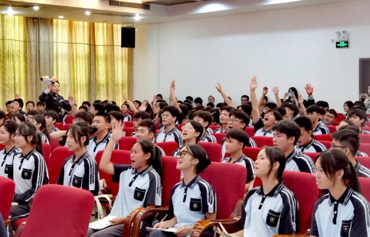 一颗糖、一杯奶茶、一段非遗表演、一次难忘的出警记录、一首动听的壮族山歌……禁毒讲师们一边展示道具,一边以通俗有趣的语言进行说唱,近300名观众的注意力持续拉满,现场不时传出雷鸣般的掌声。活动还设置了禁毒知识有奖问答、禁毒宣誓等互动环节,同学们积极“抢答”和参与,气氛十分热烈。