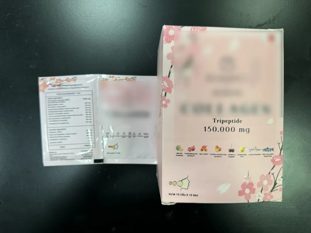 广州海关所属广州邮局海关关员在对1件进境邮件进行查验时,发现邮包内有一些零食和2盒境外品牌的胶原蛋白肽粉。现场关员发现该批胶原蛋白肽粉外包装粗劣,存在明显重新封装的痕迹,且内容物与外包装标重不符。经清点,该批粉末共有40袋、重971克。经送技术机构鉴定,确认上述粉末为氯胺酮、亚甲二氧甲基苯丙胺等毒品的混合物,又称“开心粉”。