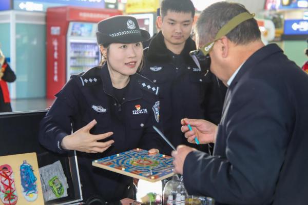 在互动环节中旅客们纷纷响应,踊跃参与禁毒知识问答,现场气氛热烈。此外,活动还特别安排了VR体验环节,邀请部分旅客亲身参与。在工作人员的指引下,参与者佩戴VR眼镜体验吸食毒品后的感官变化。在这个高度仿真的“毒”境中,眼前的彩色球变得难以分辨,位置也出现偏差,即便是想要捡起脚边的一颗彩球,也需耗时近一分钟,甚至连简单的鞋带穿孔都难以完成。通过这场沉浸式的体验,不仅增强了群众的代入感,更是将毒品的危害直观、生动地呈现在体验者面前,他们纷纷表示将坚决抵制毒品,远离毒品的诱惑。