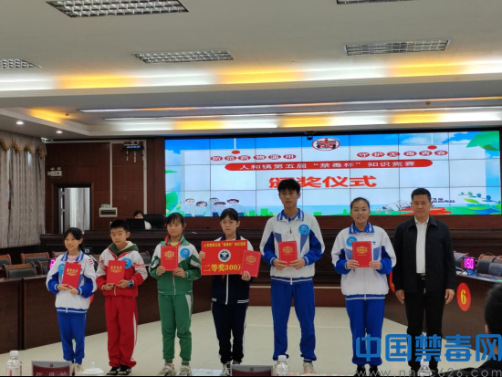 图为“禁毒杯”知识竞赛获奖选手合影留念。中国禁毒网发