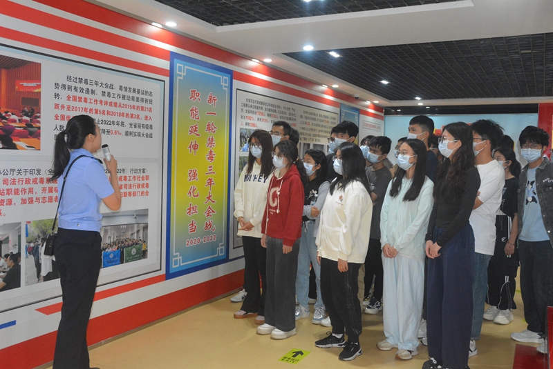 在民警的带领下,大学生们参观了青少年禁毒教育基地,充分了解毒品的种类、毒品的危害等知识;同时在禁毒3D仿真互动展区,体验了“吸毒后的你”模拟成像、毒品问答游戏等;随后戒毒人员现身说法,教育警示大学生们要远离毒品,守住人生底线。