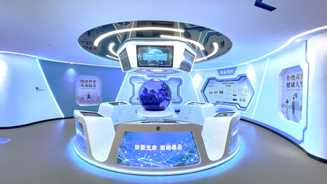 通辽市禁毒教育基地占地800余平方米,是集实用、科技、教育于一体的综合性禁毒宣传阵地。基地展厅共划分为7大区域,设有仿真毒品展示、识毒互动课堂、VR禁毒体验等设备,涵盖毒品知识普及、种类识别、危害警示、预防策略等内容。