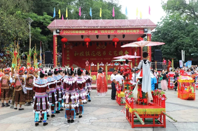 5月21日,广西柳州融水苗族自治县和睦镇第二十八届“四月廿四”花炮节在锣鼓喧天、鞭炮齐鸣中盛大启幕。万民同欢,共赴这场承载着百年历史记忆与深厚文化底蕴的民俗盛宴。在这片欢乐的海洋里,和睦镇独具匠心,奏响了一曲“非遗+禁毒”的华美乐章。以“花炮点亮无毒梦 平安生活润万家”为主题,让禁毒宣传搭乘非遗文化的“祥云”,飞入寻常百姓家,为守护一方净土、构建和谐家园注入源源不断的强劲动力。