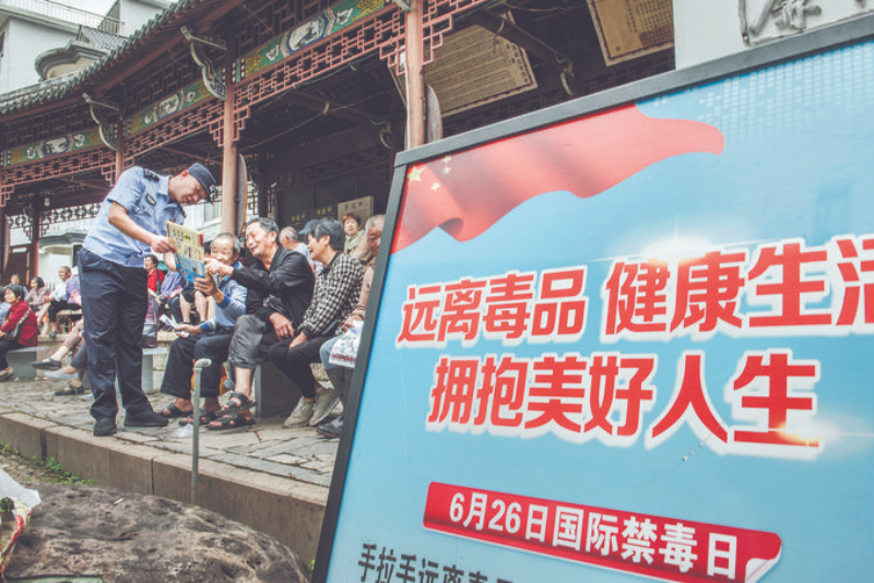 图为6月11日,民警在庙会上开展禁毒宣传。徐文荣 摄
