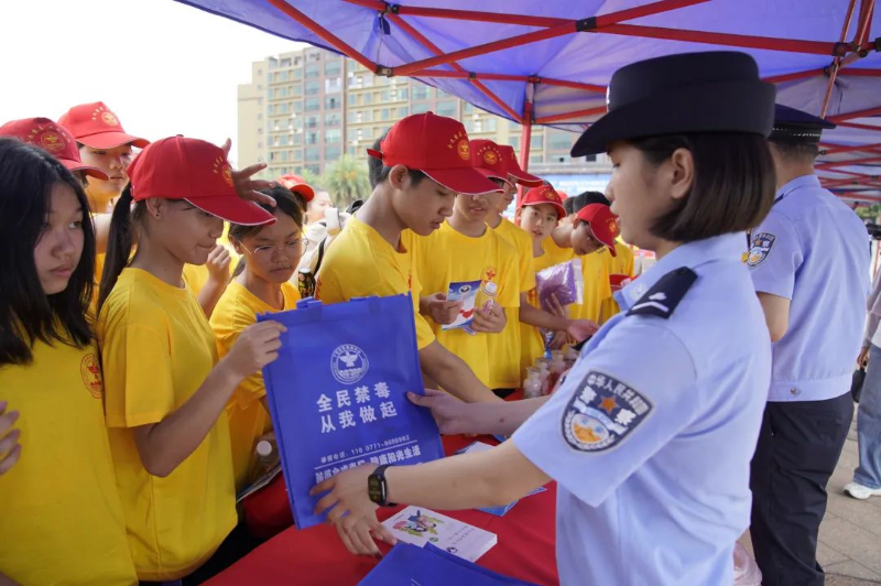 活动当天还开展了禁毒签名、参观新时代禁毒宣传教育展览等活动,通过现场禁毒智能AI语音展板、现场宣讲等方式,生动展示各类毒品的危害性特征。禁毒民警结合真实案例进行宣讲,重点警示青少年避免药物滥用,教育引导青少年树立"健康人生、绿色无毒"的理念。