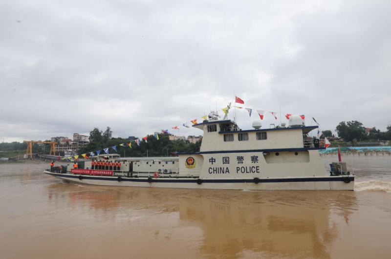 6月24日,在景哈警务码头,执法队员整齐列队,等待编队启航。(云南省公安厅水上巡逻总队供图)