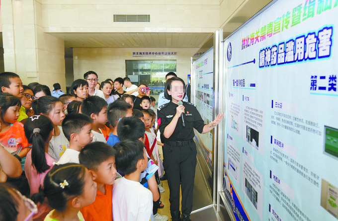 如今,王湛怡与队友共同打造的以“禁毒知识宣讲-禁毒模型体验-现场搜查表演”为主要内容的禁毒教学模式,已累计开展授课80余场,覆盖青少年群体超2万人次,单场听课人数最高达9000余人。