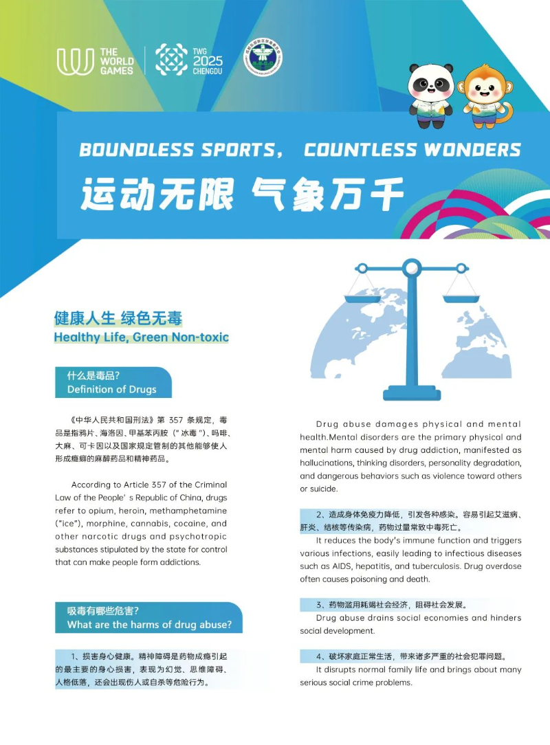今年以来四川省成都市、东部新区两级禁毒、体育部门以第12届世界运动会为契机,以“体育之城、健康新区”为定位,开创性探索“禁毒+反兴奋剂”双轨宣传模式,通过赛事志愿者培训、行业联盟共建、沉浸式宣教等创新举措,为青少年筑起立体化防毒屏障。