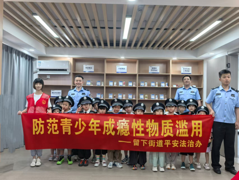 近日,浙江省杭州市西湖区公安分局联合留下街道平安法治办、浙江省拱宸强制隔离戒毒所带着一群身着迷你警服的“小警察”来到留下禁毒宣传阵地参观学习,开启了一场意义非凡的禁毒之旅。
