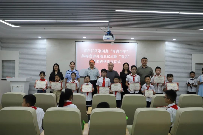 中国禁毒网讯 8月18日下午,四川省成都市青白江区第四期“青青少年”禁毒宣讲团结业典礼暨“青见”研学活动收官仪式举行。本次活动以“青春无毒·未来可期”为主题,集中展示了学员们在禁毒知识学习和“青见”研学实践中的丰硕成果,标志着新一批青少年禁毒宣传主力军的诞生。40名学员、志愿者和嘉宾参加了活动。
