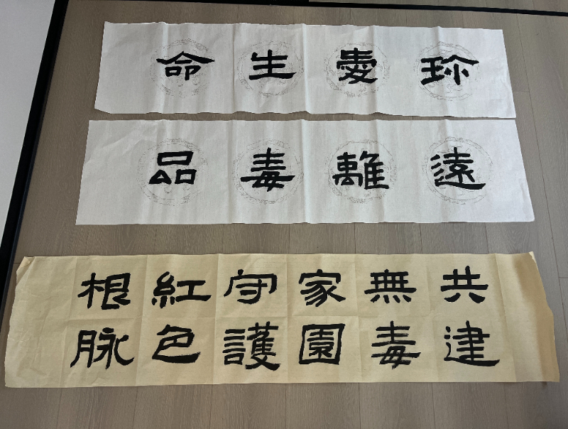 最后,学员们手握毛笔,在宣纸上挥毫泼墨,他们以笔为“枪”、以砚为“盾”,在书写过程中深刻理解毒品的危害,表达坚决抵制毒品的决心。