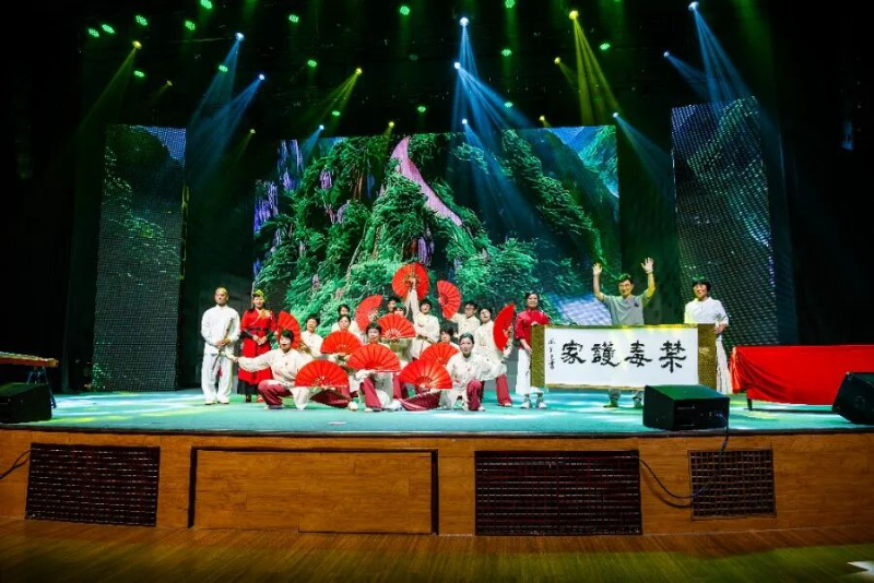 晚会尾声,结束舞《我爱你中国》精彩上演,全体演职人员携手登台,挥舞着鲜艳的国旗,用饱满的热情抒发对祖国的热爱。