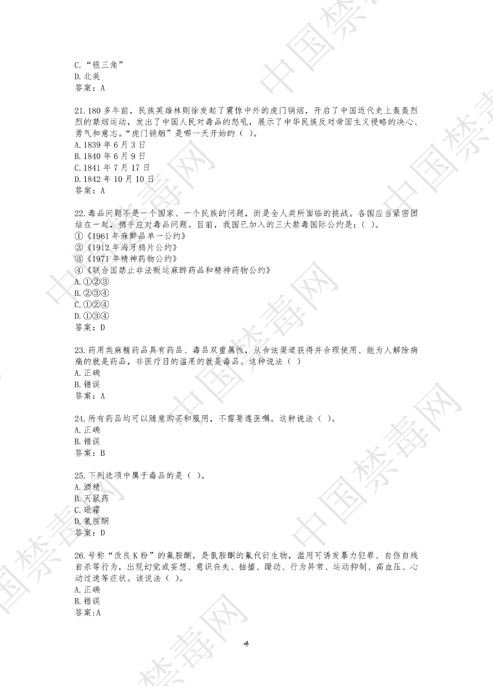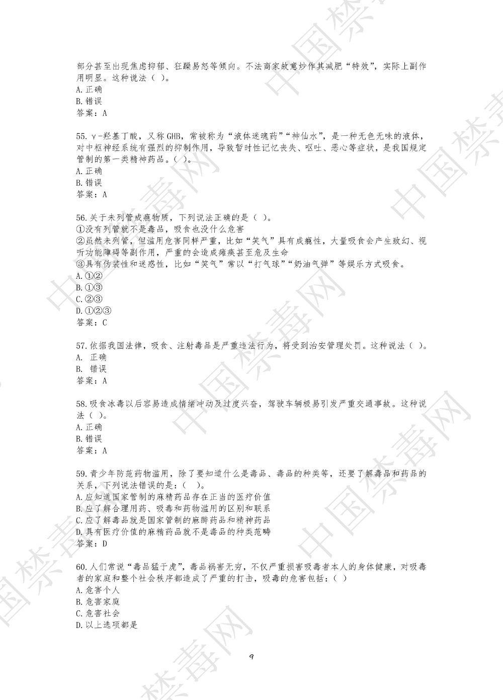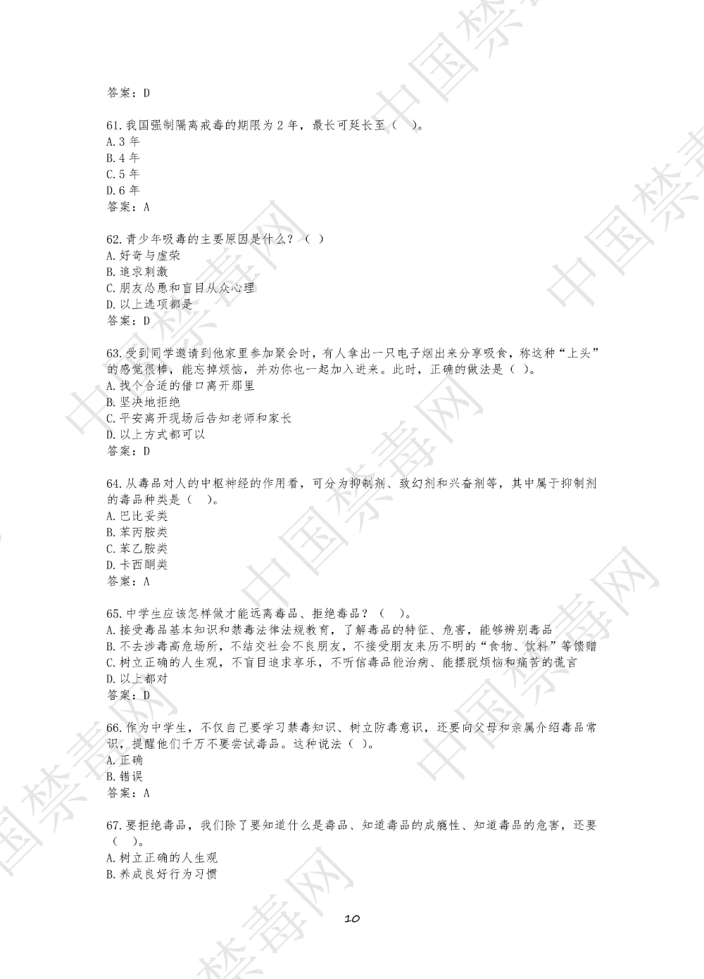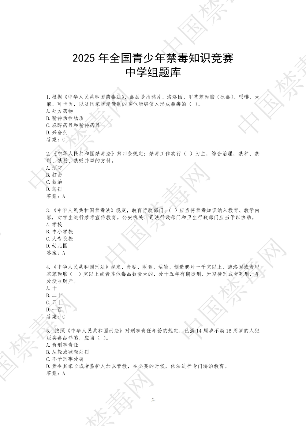 2025年全国青少年禁毒知识竞赛中学组题库-中国禁毒网
