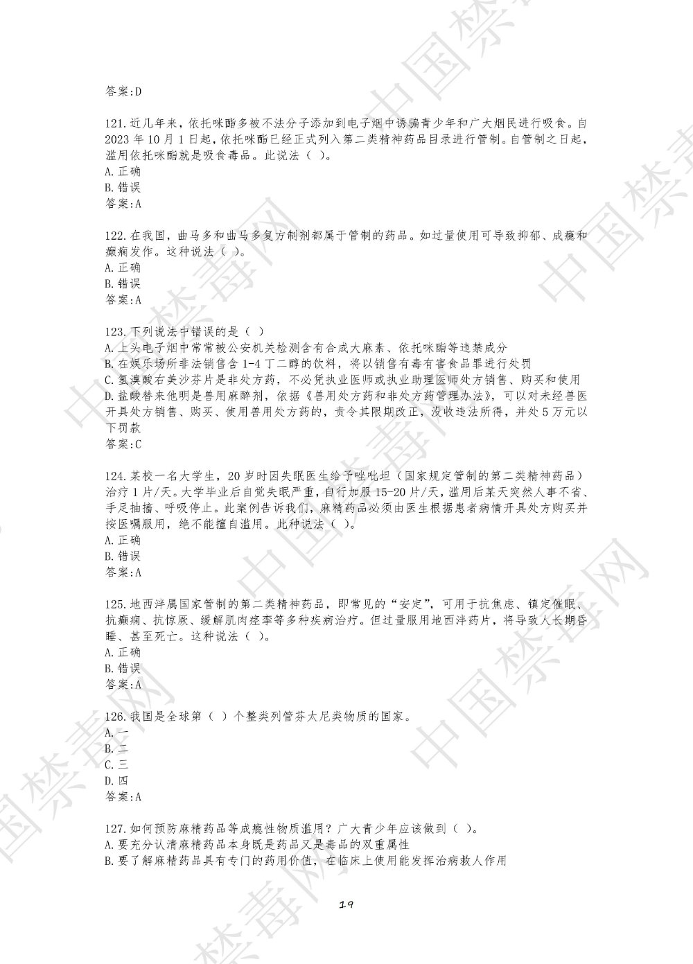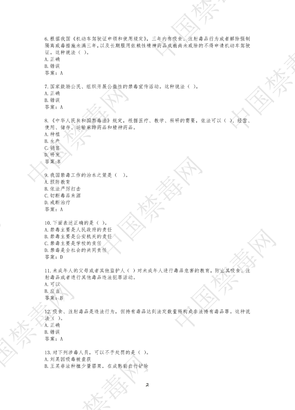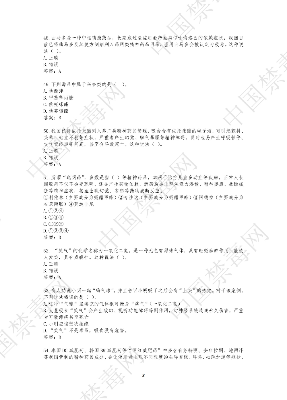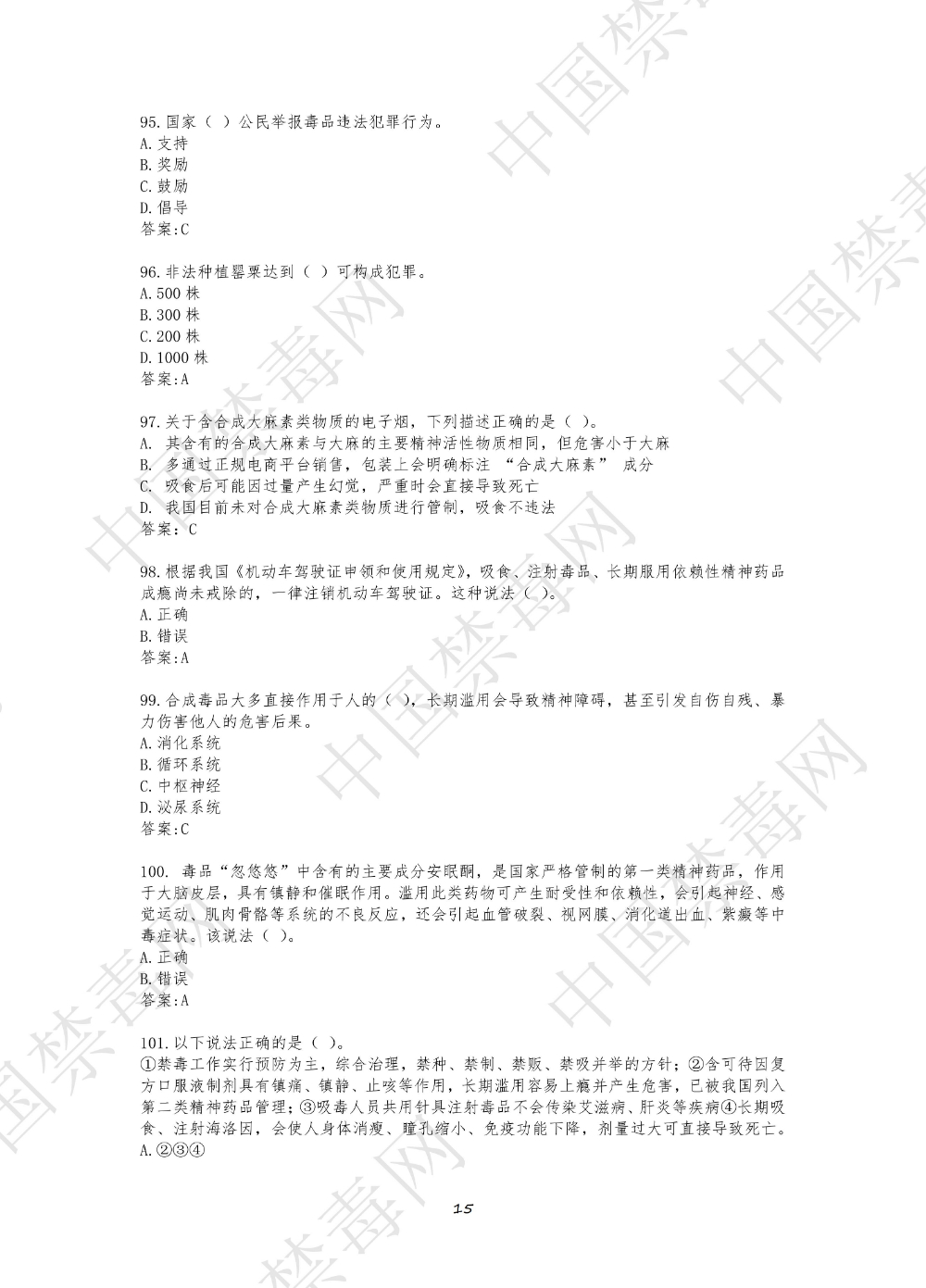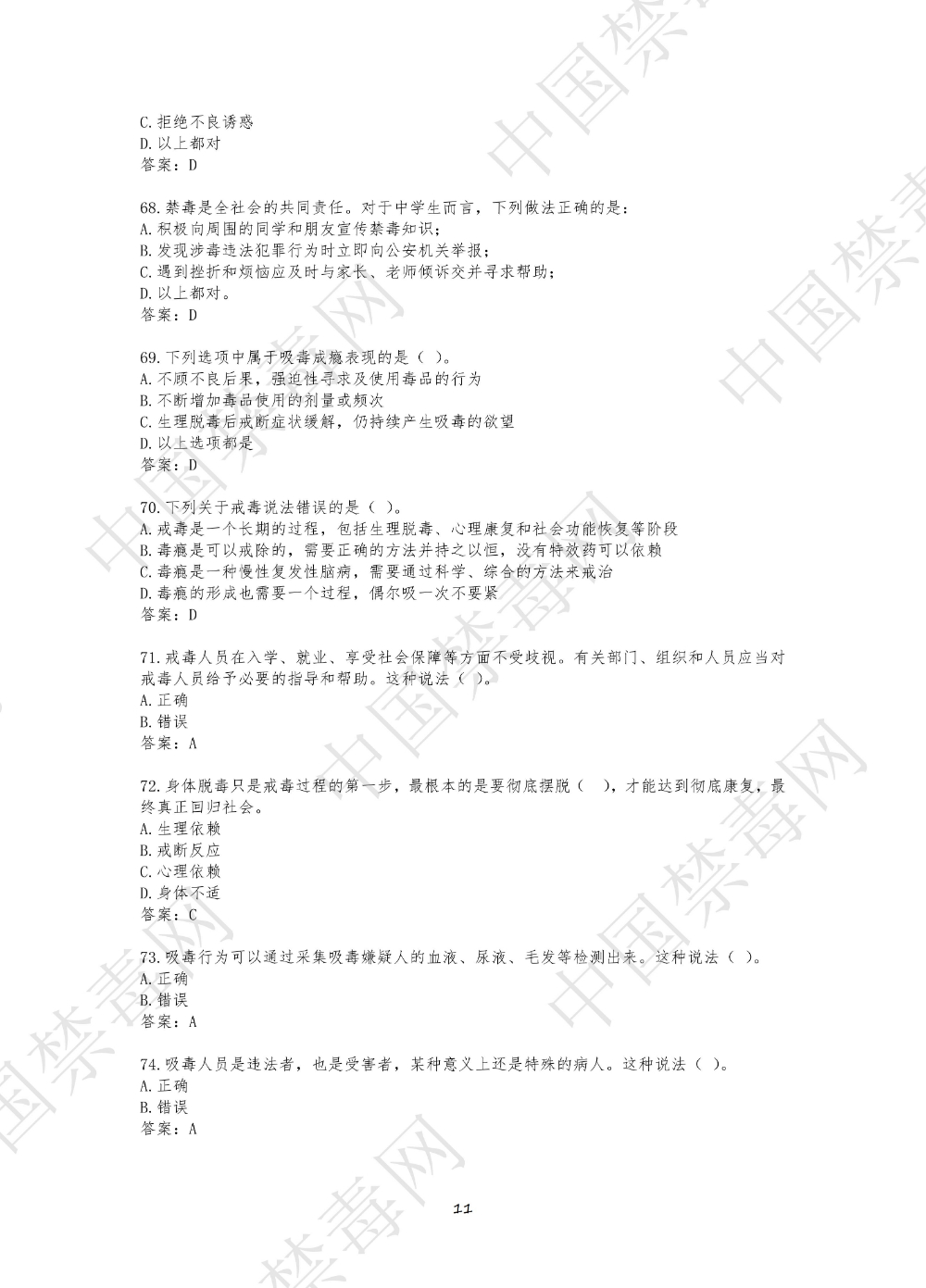2025年全国青少年禁毒知识竞赛中学组题库-中国禁毒网