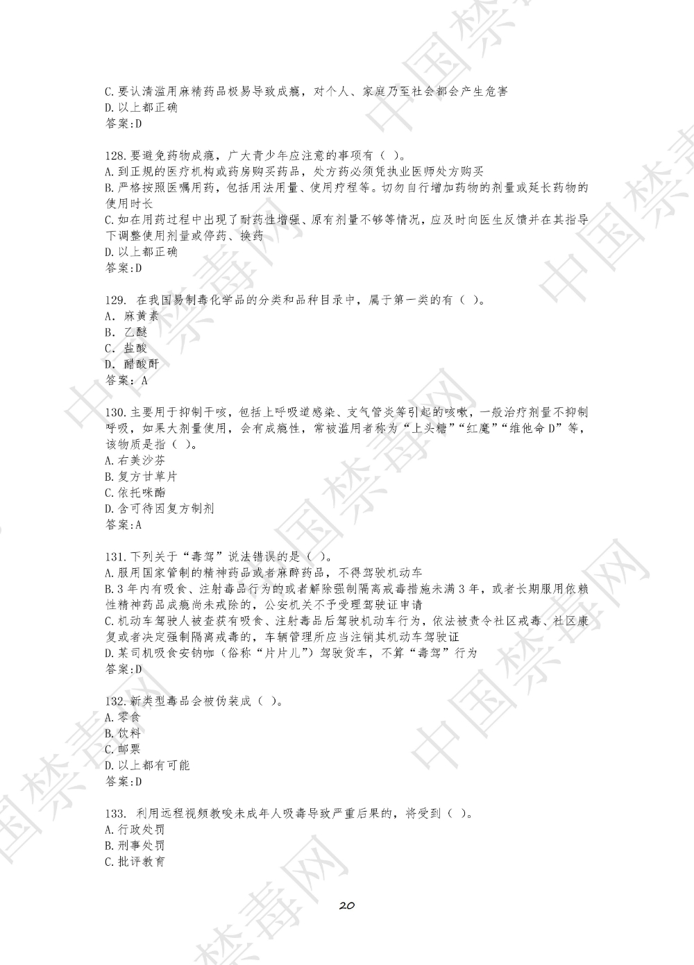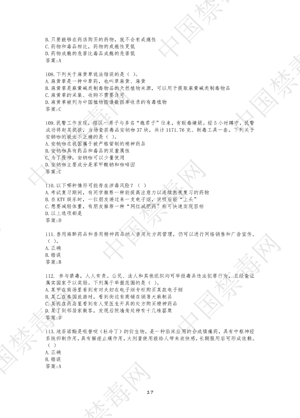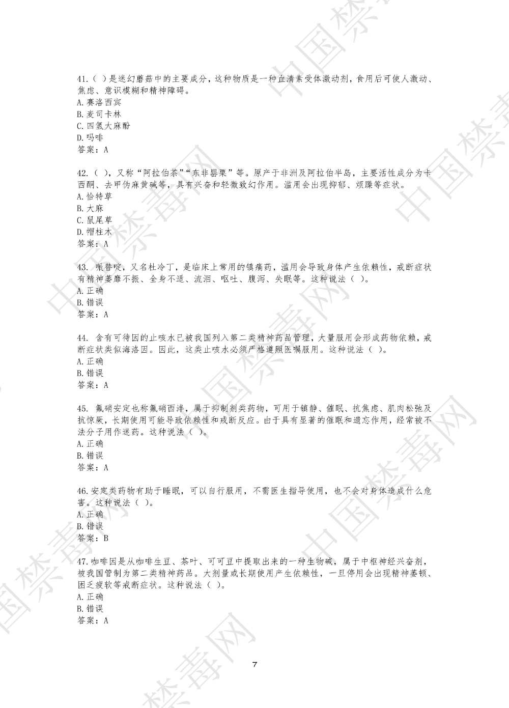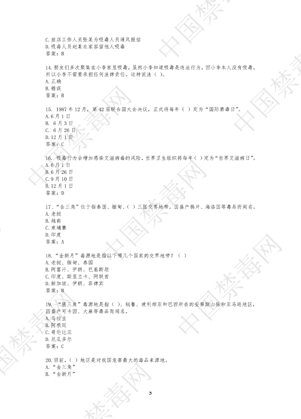 2025年全国青少年禁毒知识竞赛中学组题库-中国禁毒网