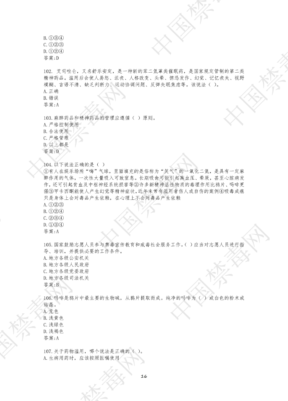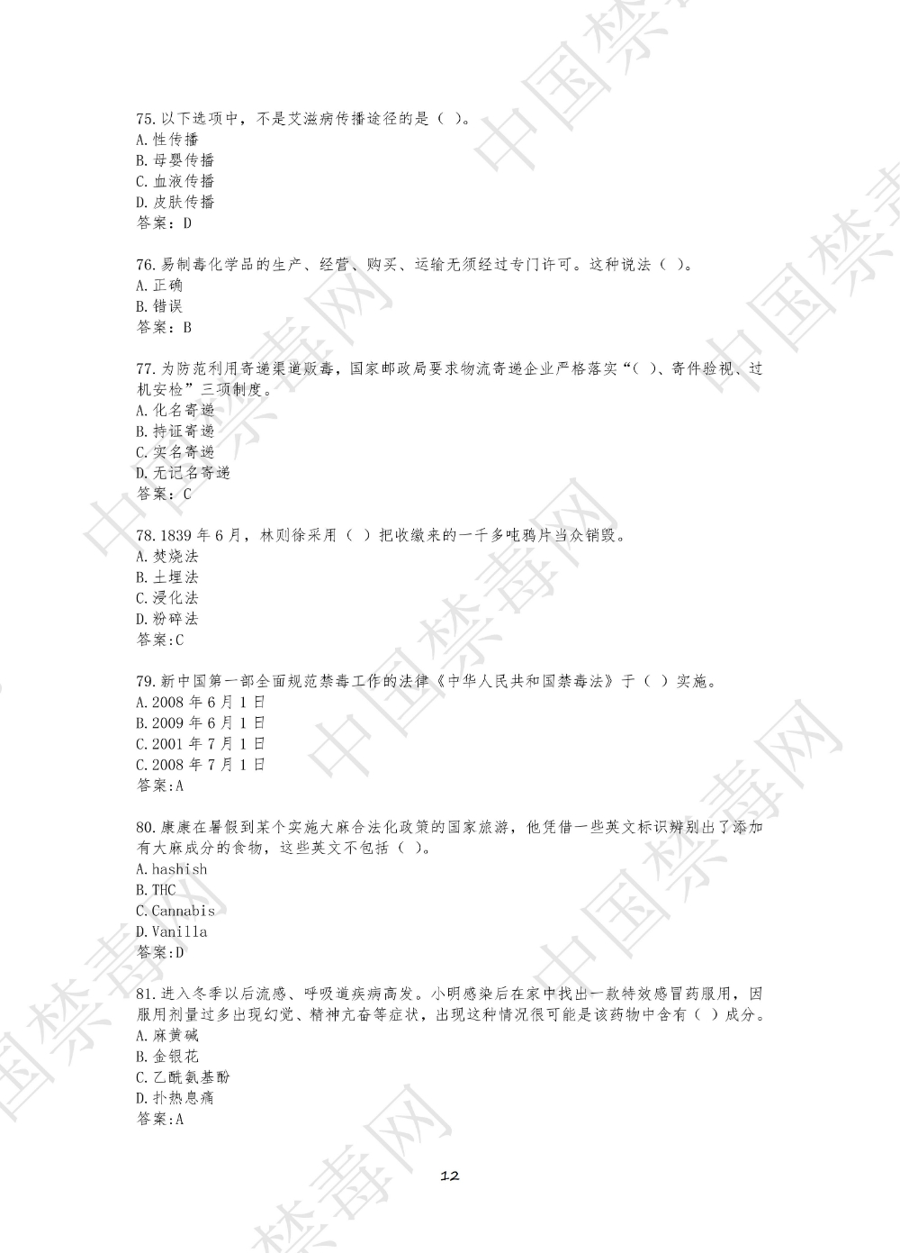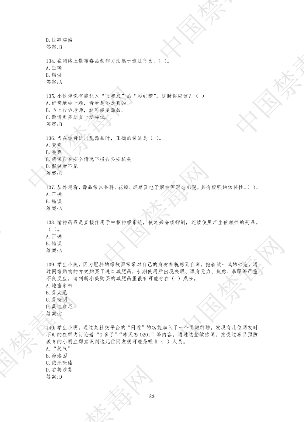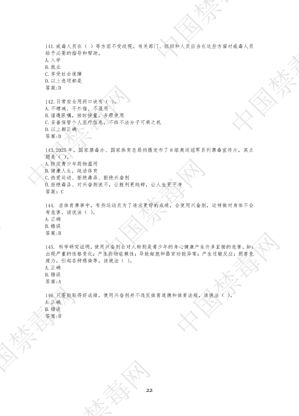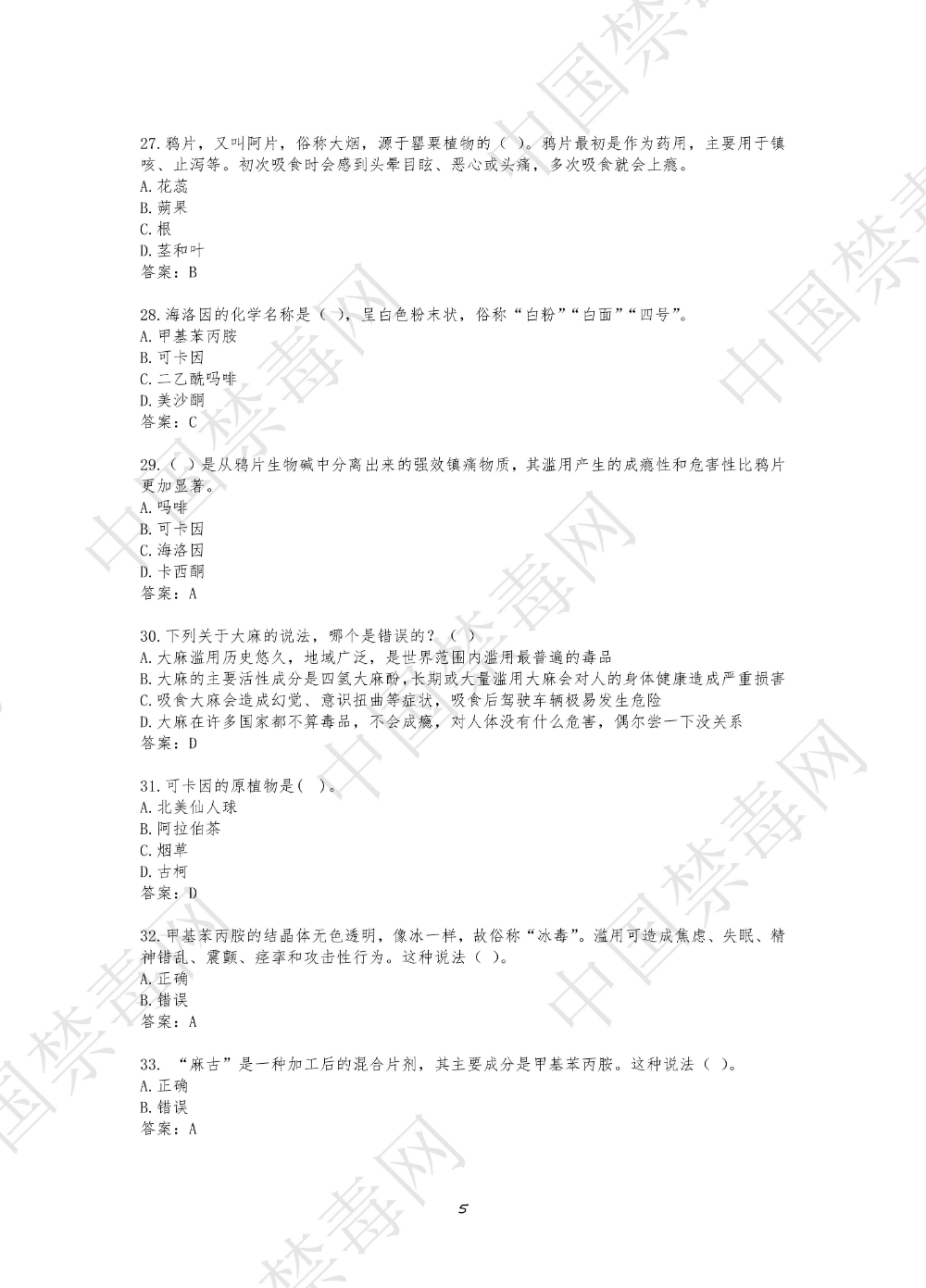 2025年全国青少年禁毒知识竞赛中学组题库-中国禁毒网