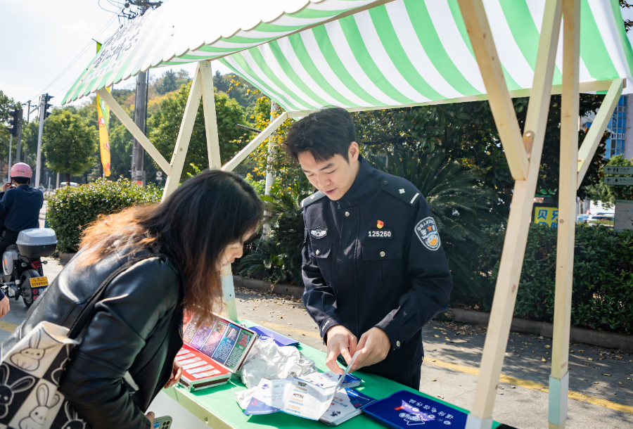 中国禁毒网讯 近日,浙江宁波慈溪市古塘街道联合当地派出所,利用该地“好物周”活动期间人员聚集的有利时机,“摆摊设点”把禁毒宣传资料送到来往居民手中,普及毒品预防知识,增强居民禁毒意识。