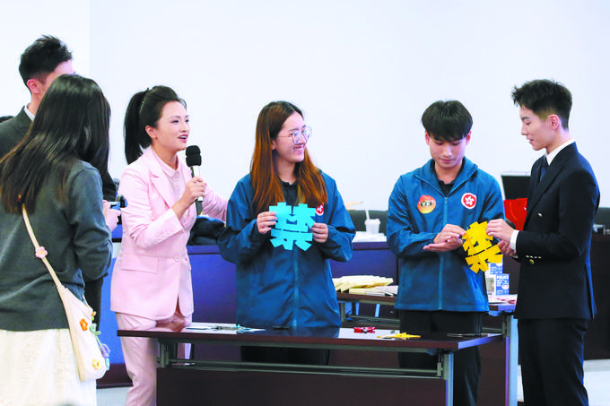 2025年12月9日,在全国青少年禁毒知识竞赛总决赛赛前交流活动中,青少年学生共同展示“禁”字非遗剪纸。记者徐炜摄
